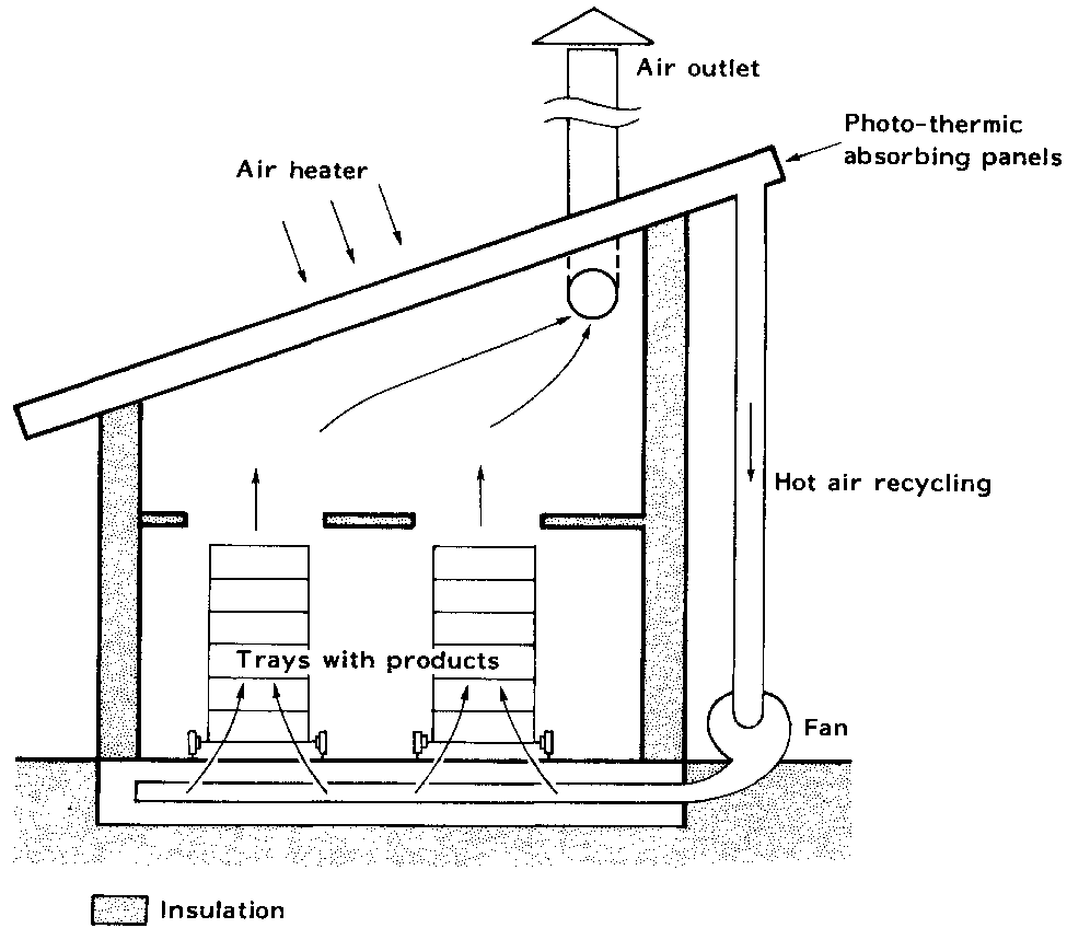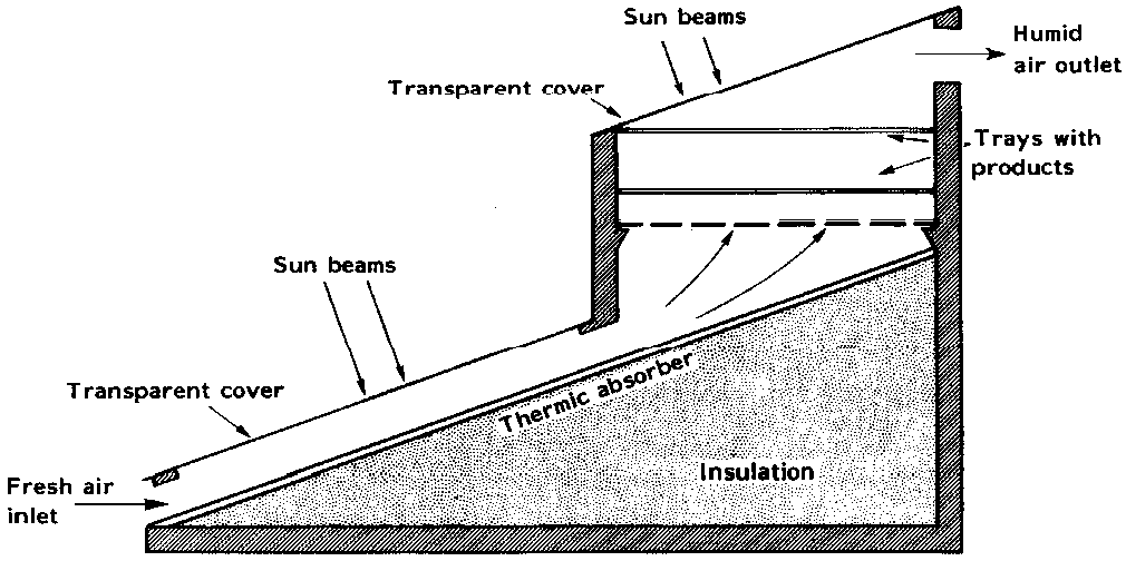 In all the countries visited, the mission did not hear of or see any case of indirect solar drying which would have given dried fruit and vegetables of first class quality. The few good quality products found on the market came from industrial drying plants using diesel oil for artificial heating.