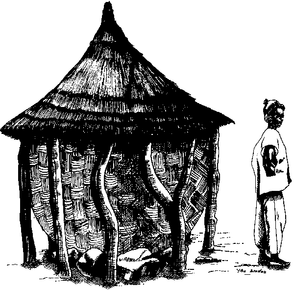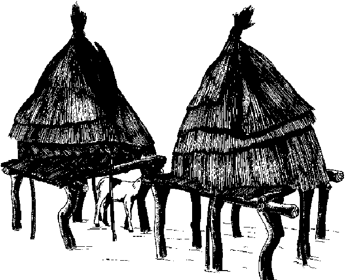 Ce grenier (figure B.7), qui ressemble beaucoup à ceux des ethnies Dogon et Bwaba, consiste en une plate-forme, faite de trois poutres maîtresses et d'un plancher de traverses en bois, le tout reposant sur six ou neuf grosses pierres.