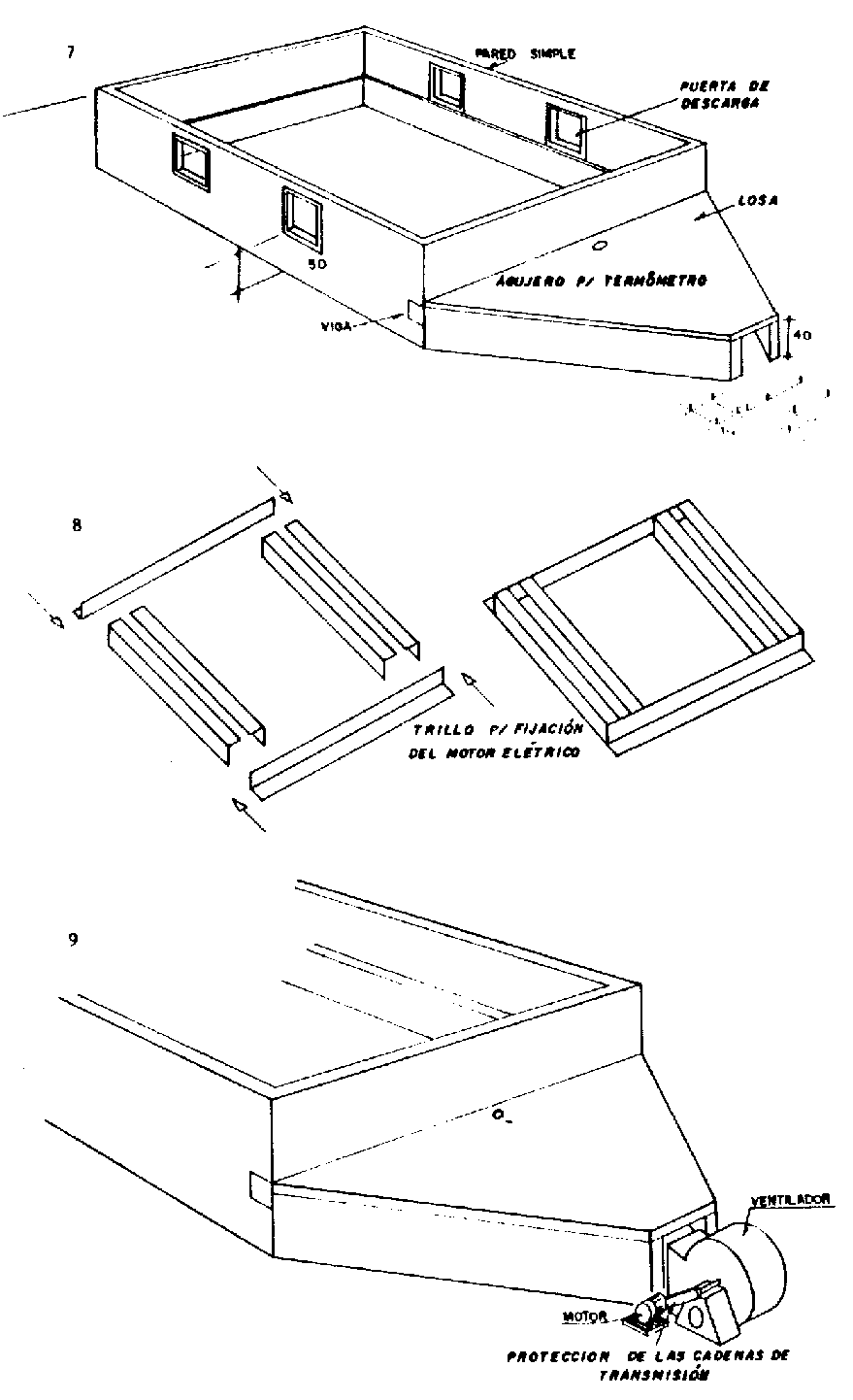Construcción del secador. El secador de lecho fijo debe ser instalado, si es posible, cerca del almacén (figuras 25 a 30).