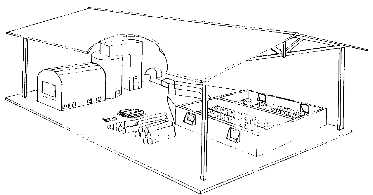 Secador de lecho fijo modelo Tailandia. El secador de lecho fijo desarrollado y usado en Tailandia para el secado del arroz, es un modelo semejante al representado anteriormente (con una cámara de secado). Este modelo puede emplear combustibles líquidos para calentamiento del aire y también hornos que queman cascarilla de arroz (figura 40).
