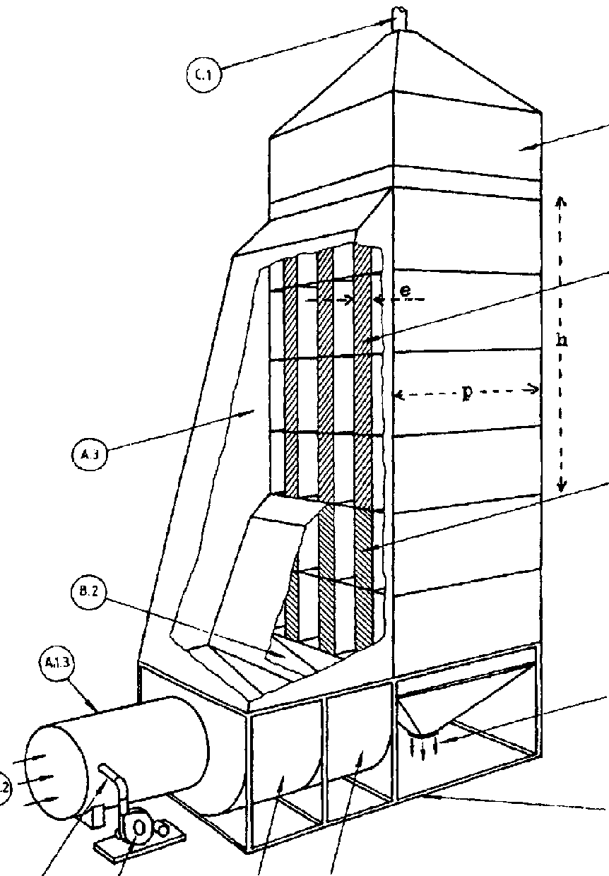 Hay dos magnitudes que son importantes en las dimensiones de esta cámara: la altura y la profundidad. En las secadoras de columnas continuas o en tandas, se agrega una tercera, el espesor de la columna (Figura 28).