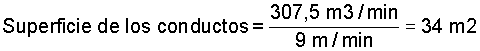 Las velocidades del aire en los conductos (ducíos) y tubos no deberán exceder los 450 m por minuto. Si se divide el caudal total de aire por 450, se obtiene la sección de conductos (ducíos) mas apropiada. Los cambios de dirección y las aberturas no debieran restringir el caudal de aire.