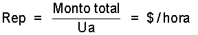 El costo horario de Rep de cada noria se obtiene con el siguiente coeficiente:
