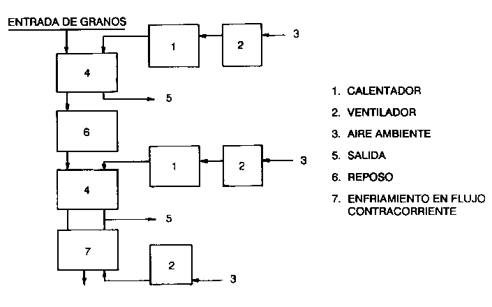 Figura 27. Esquema de un secador intermitente de flujos cruzados.