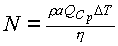 El primer paso para calcular las dimensiones de los hornos para combustibies sólidos consiste en calcular la potencia N necesaria para calentar el aire, la cual es función de la cantidad de aire que hay que calentar, Q, de la masa especifica del aire Pa, del incremento de temperatura buscado ?T, del calor específico del aire, cp,y del rendimiento térmico estimado del horno, homo, de acuerdo con la ecuación 6: