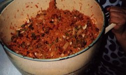 - Poner a fuego lento-mediano por una hora/una hora y media, de acuerdo con el estado de madurez de las zanahorias. Revolver frecuentemente con una cuchara de madera para evitar que el producto se pegue en el fondo de la olla y se queme.