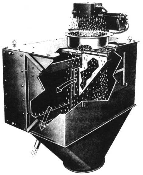 Il est formé d'un cône au sommet duquel tombe l'échantillon. A la périphérie du cône les grains sont recueillis en 36 filets qui sont regroupés ensuite et recueillis à la base sur 2 sorties. Ce type de diviseur convient pour un prélèvement ne comportant pas trop de fragments végétaux (Fig. 21).