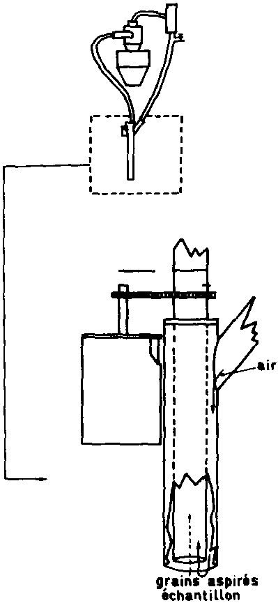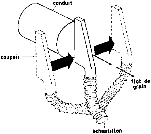 Enfin dans les centres où l'on effectue des prélèvements en continu (voir plus haut), on peut adjoindre à l'échantillonneur un diviseur qui sépare le flux de grain en deux ou trois flux représentant au total le 1/10 du flux principal.