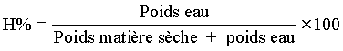 Exemple: si après étuvage l'échantillon de 5 g ne pèse plus que 4,2 g, l'humidité du produit est: (5 - 4,2)/5 ´ 100 = 16 %.