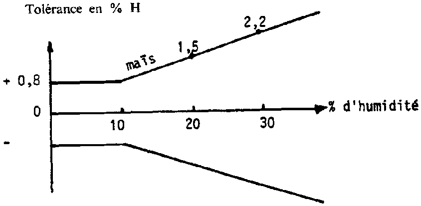 Il apparaît qu'une erreur de 10 % sur le poids de l'échantillon se traduit par une erreur de 6 points (de 24 à 30 %) sur la mesure de l'humidité. Il est donc important que les échantillons soient «pesés avec soin».