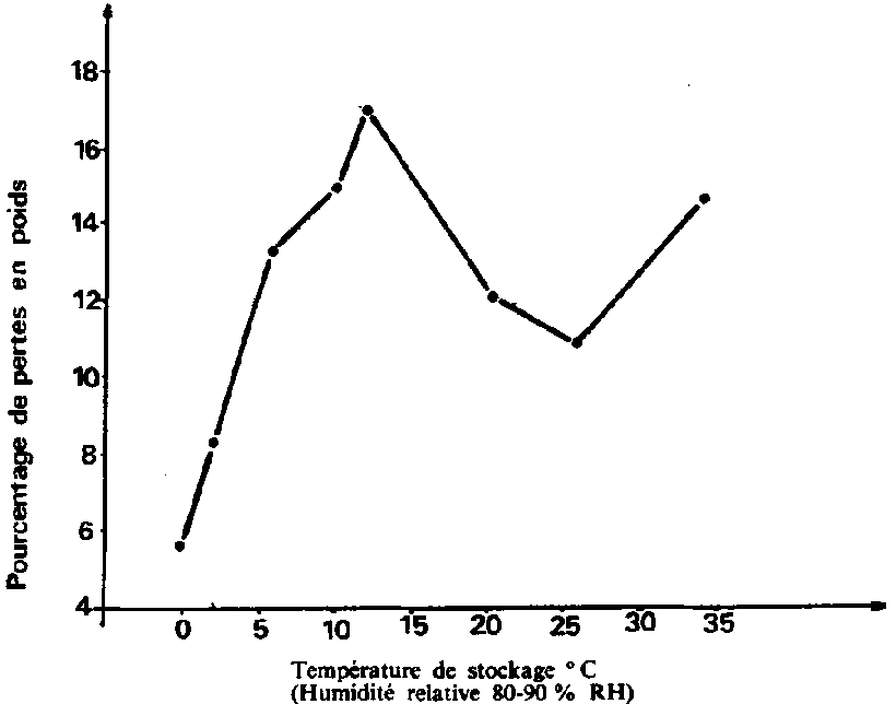 L'utilisation du froid est également envisagée pour prolonger la dormance. Sur l'igname, la température minimale serait de 15° C (en dessous de 12°C - 13°C des altérations apparaissent) et l'humidité relative de 85 % à 90 %. Cependant, à ce niveau de température, on favorise l'attaque des tubercules par les moisissures (Penicillium oxalicum à un développement optimal à 18° C).