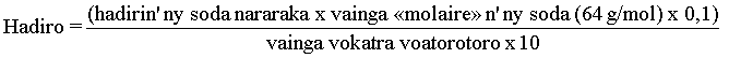 refeso amin'ny alalan'ny "birety" misy marika ambaratonga, feno soda 0,1N; sady ahotsakotsana tsy araraka intsony ny soda rehefa midioka ho mavokely ny vokatra nolevonina.
